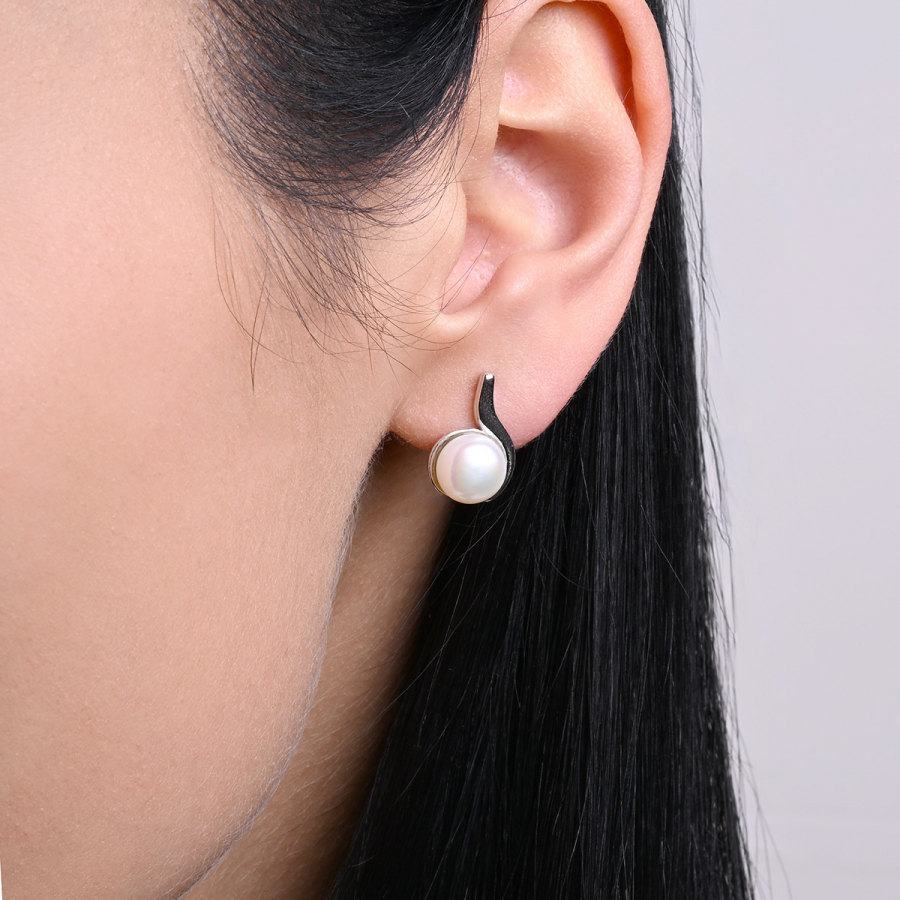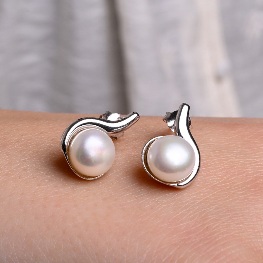 Jemné strieborné náušnice s krásnou riečnou perlou lesknúcou sa vo vlnke vám pridajú na elegancii.