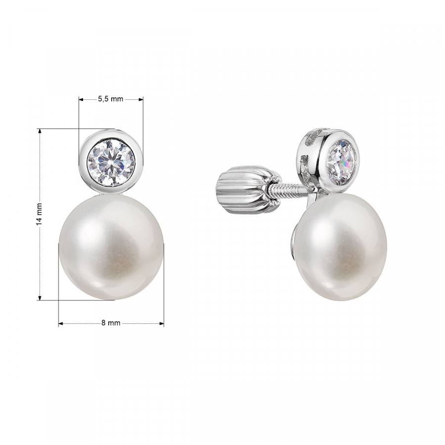 Náušnice 21089.1B sú vyrobené zo striebra o rýdzosti 925/1000 vrátane povrchovej úpravy ródiom. Ródium ochráni šperk proti sčerneniu, zožltnutiu i poškriabaniu. Veľkosť perly je 8 mm a kvalita AA . Náušnice sú zdobené priezračnými zirkónmi, ktoré ich krásne rozžiaria. Šperk neobsahuje prídavok niklu, a tak ho môžu nosiť aj ľudia náchylní na alergické reakcie. Náušnice majú zapínanie na balónik , ktorý ich ochráni proti nechcenej strate.