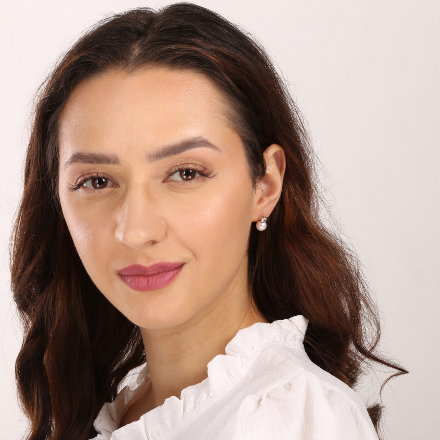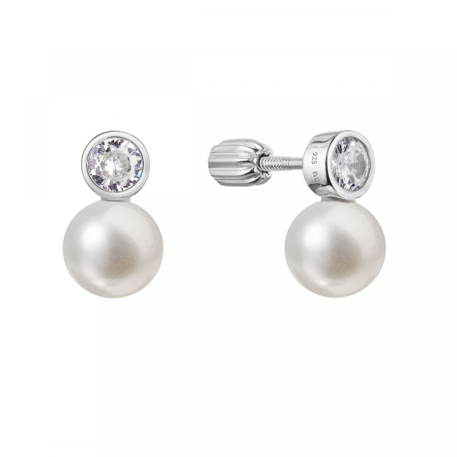 Strieborné náušnice s bielou riečnou perlou a trblietavým zirkónom sú jednoduché a pritom dokážu rozžiariť Váš všedný deň.