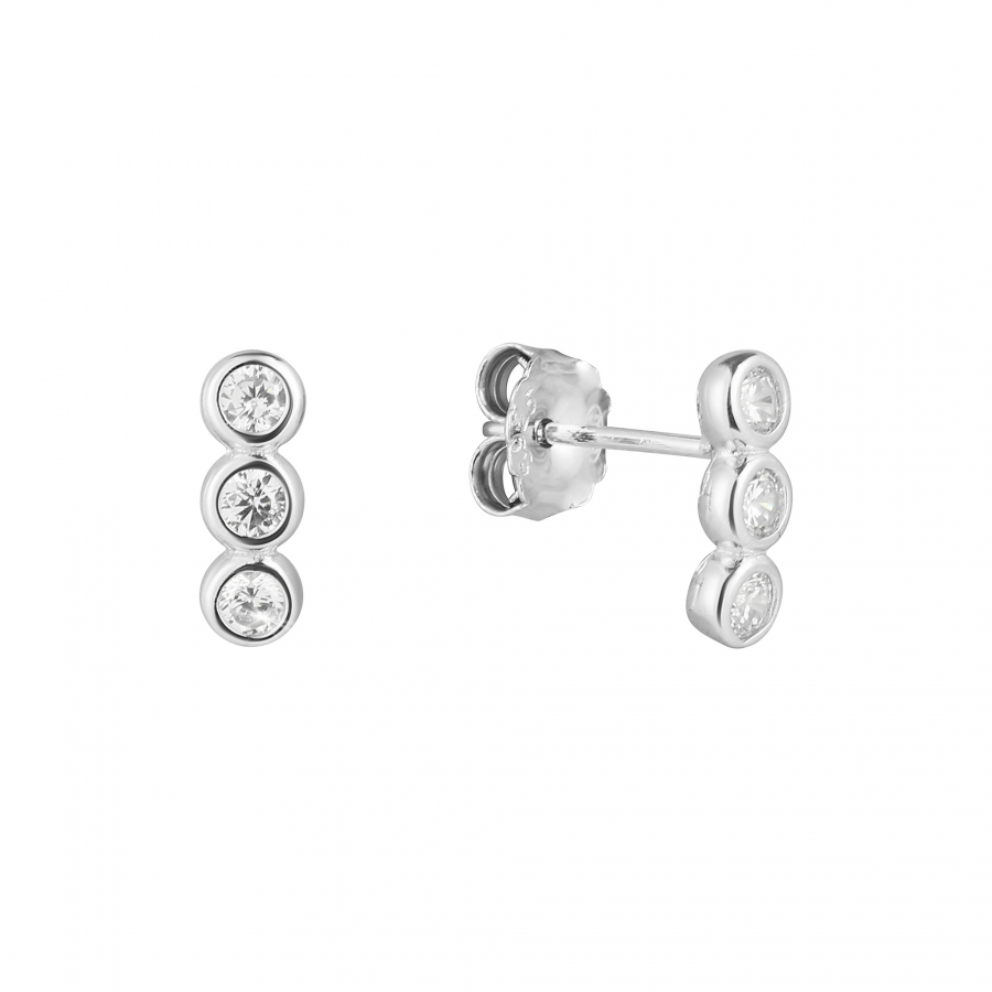 Strieborné náušnice kôstky s tromi zirkónmi pod sebou 11529.1 crystal