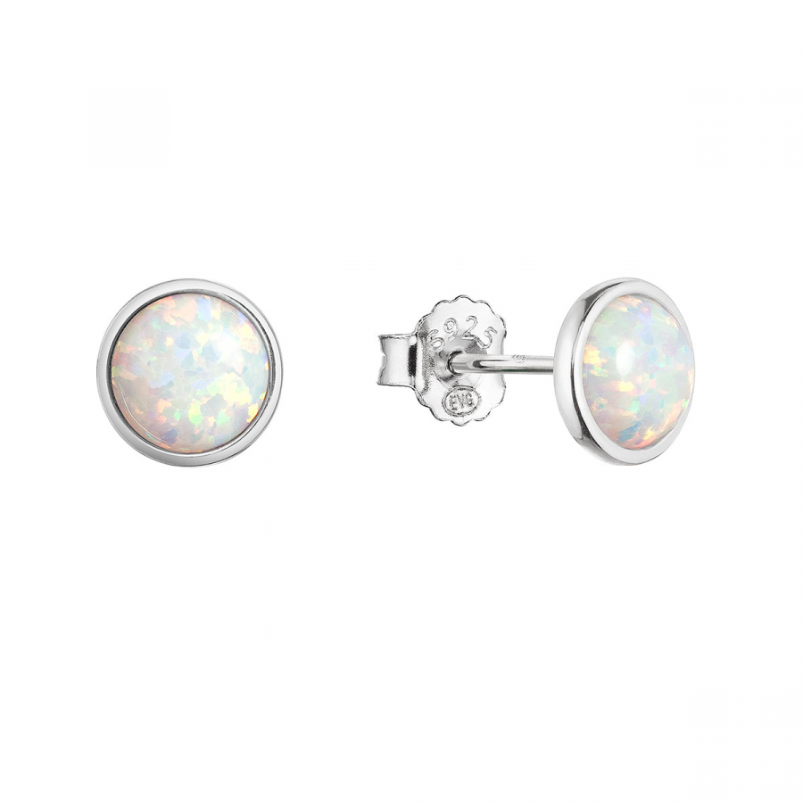 Strieborné náušnice kôstky so syntetickým opálom biele 11464.1 white