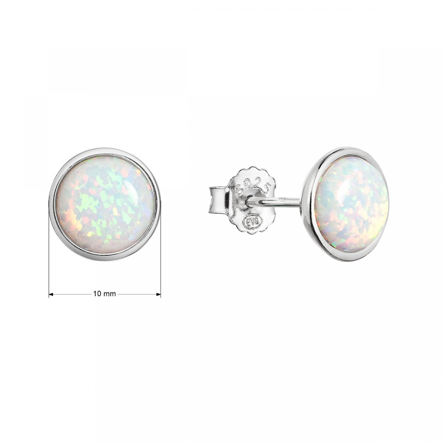 Strieborné náušnice kôstky so syntetickým opálom biele 11465.1 white