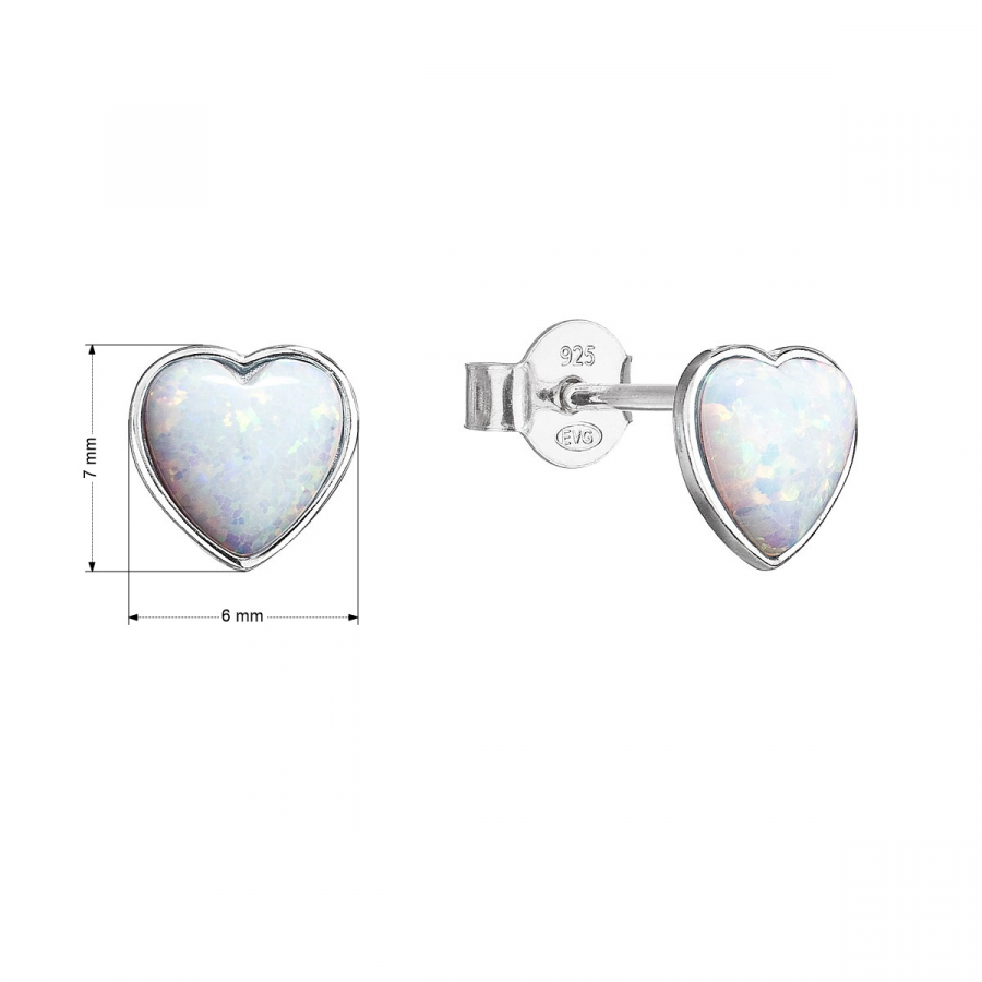 Parametre strieborných náušníc kôstky so syntetickým opálom biele srdce 11337.1