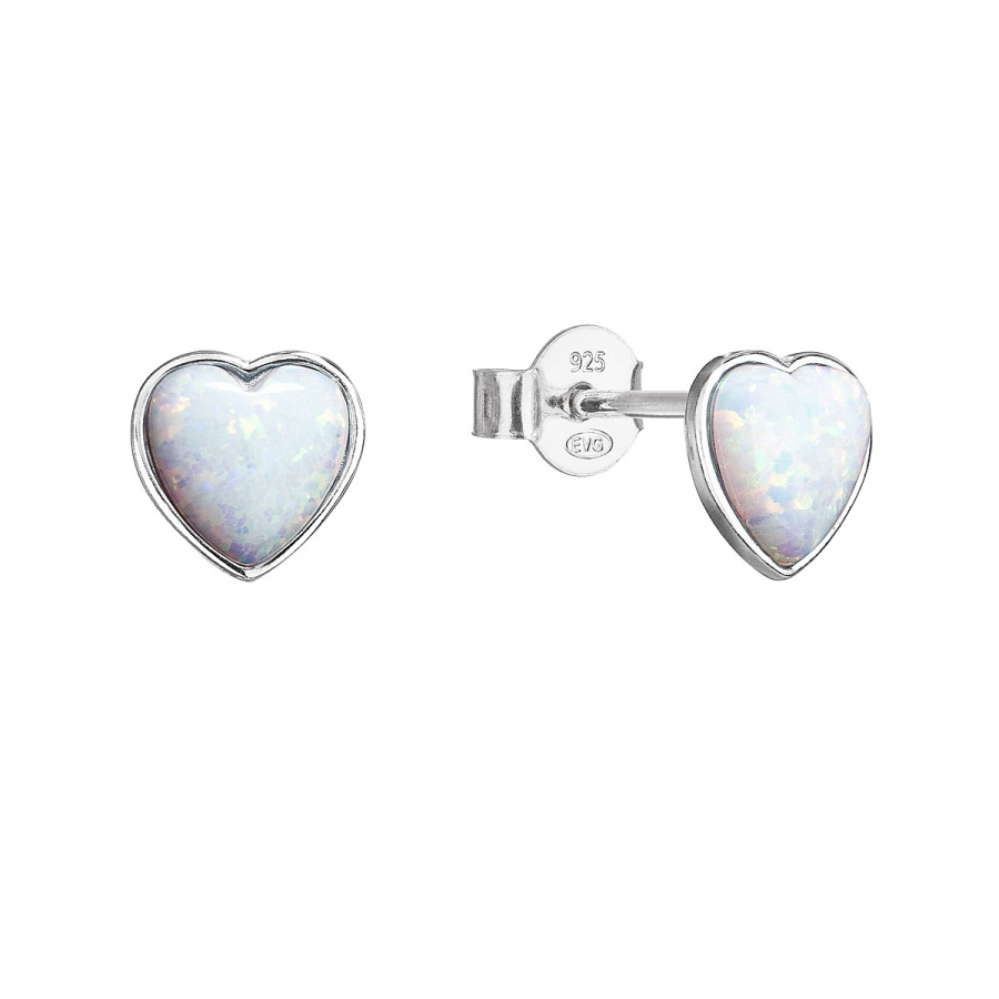 Strieborné náušnice kôstky so syntetickým opálom biele srdce 11337.1