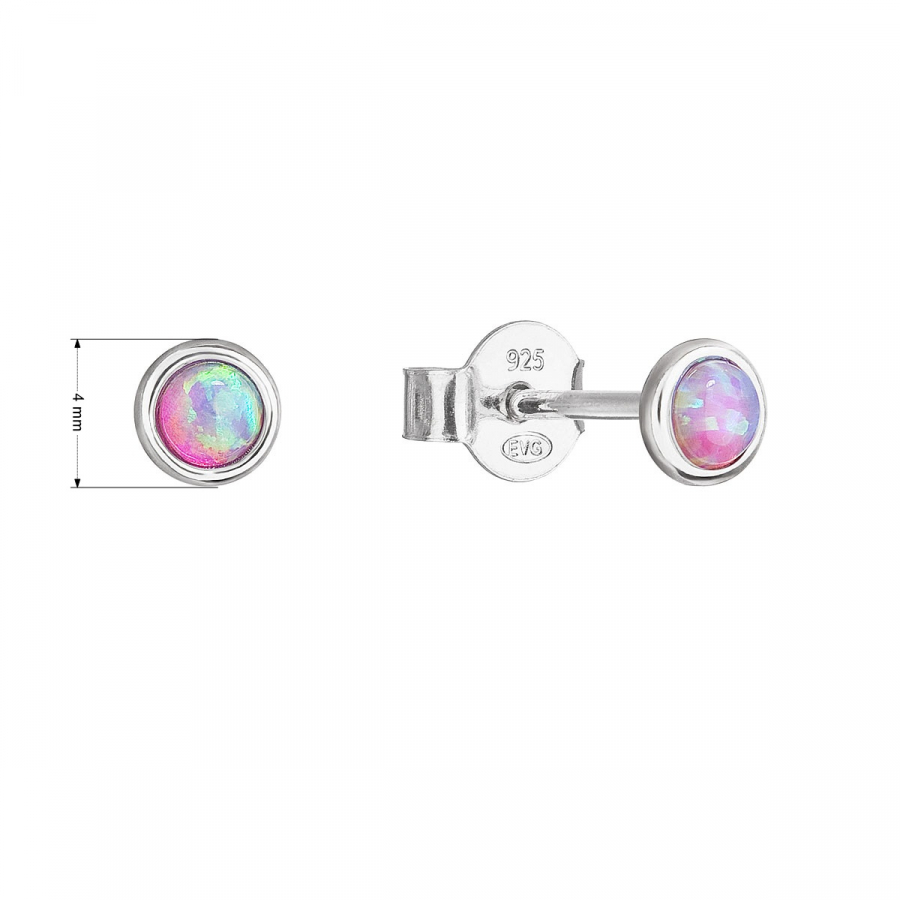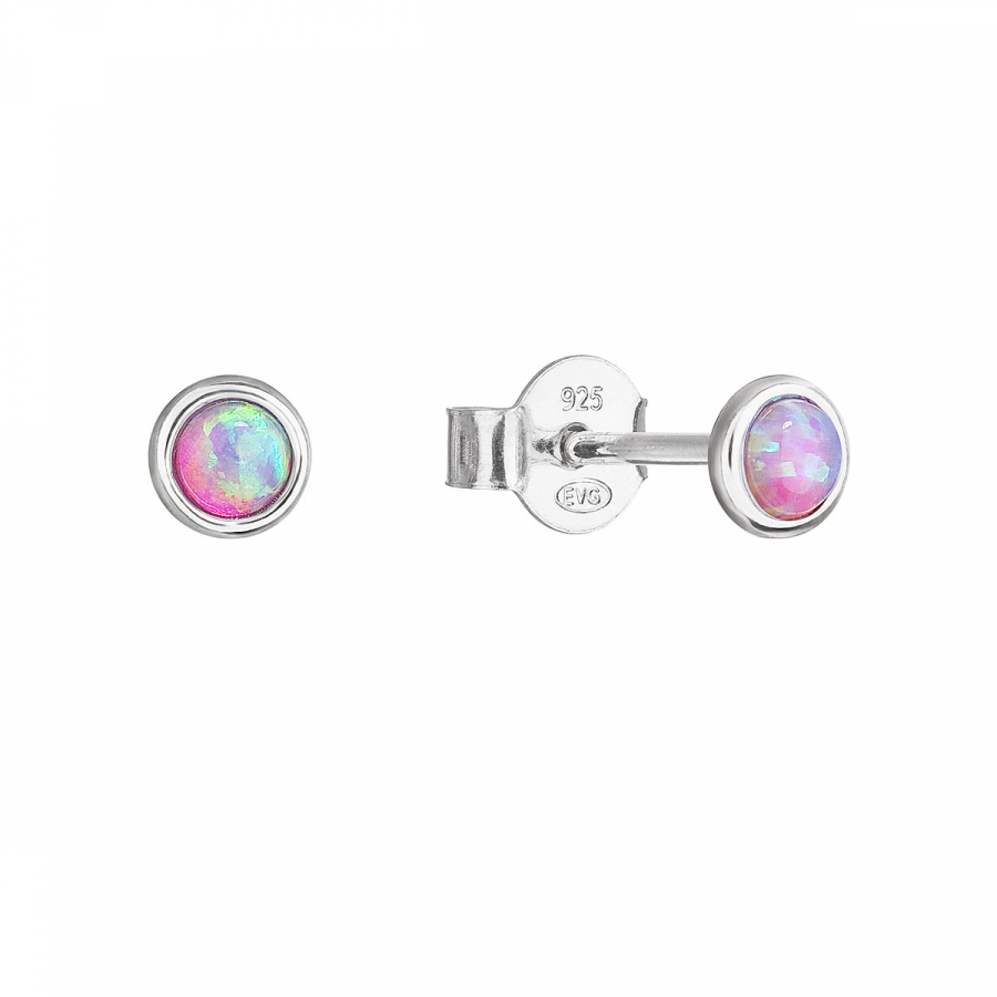 Okrúhle kôstky náušnice tvoríme zo striebra rýdzosti 925/1000, ktoré je upravené ródiom. Vďaka ródiu je šperk odolný proti sčernaniu, zožltnutiu alebo poškriabaniu. Náušnice tvoria okrúhly syntetický opál v ružovej farbe.