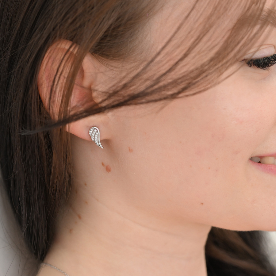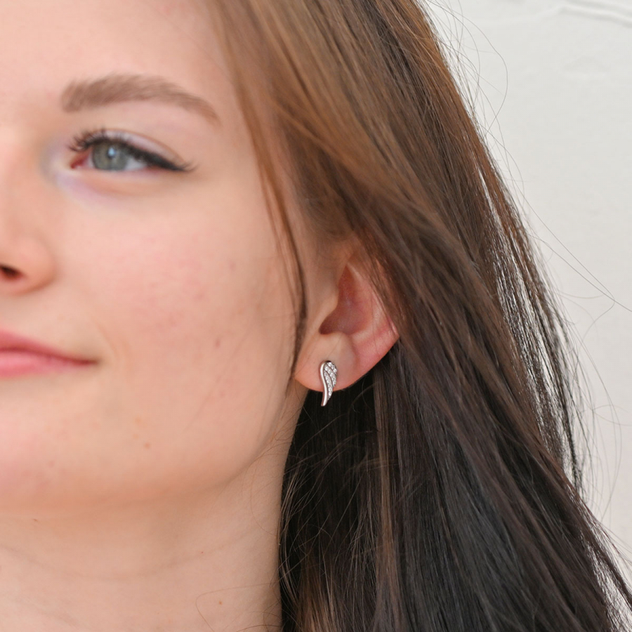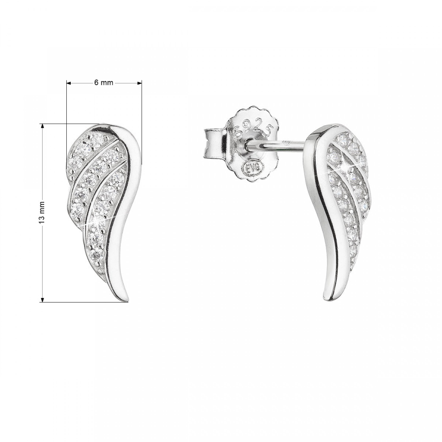 Strieborné náušnice kôstky so zirkónmi biela krídla 11440.1