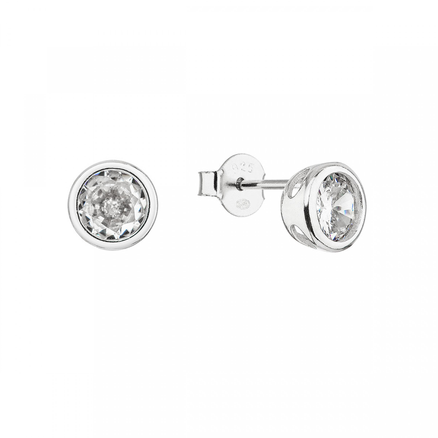 Strieborné náušnice kôstky so zirkónom biele okrúhle 11407.1 crystal
