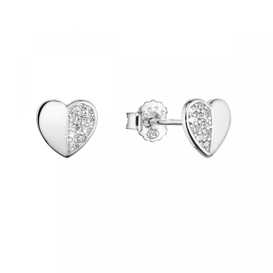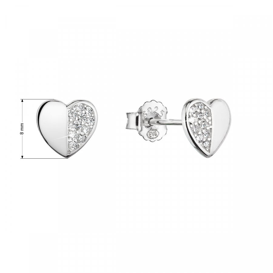 Strieborné náušnice kôstky srdiečko so zirkónmi 11471.1