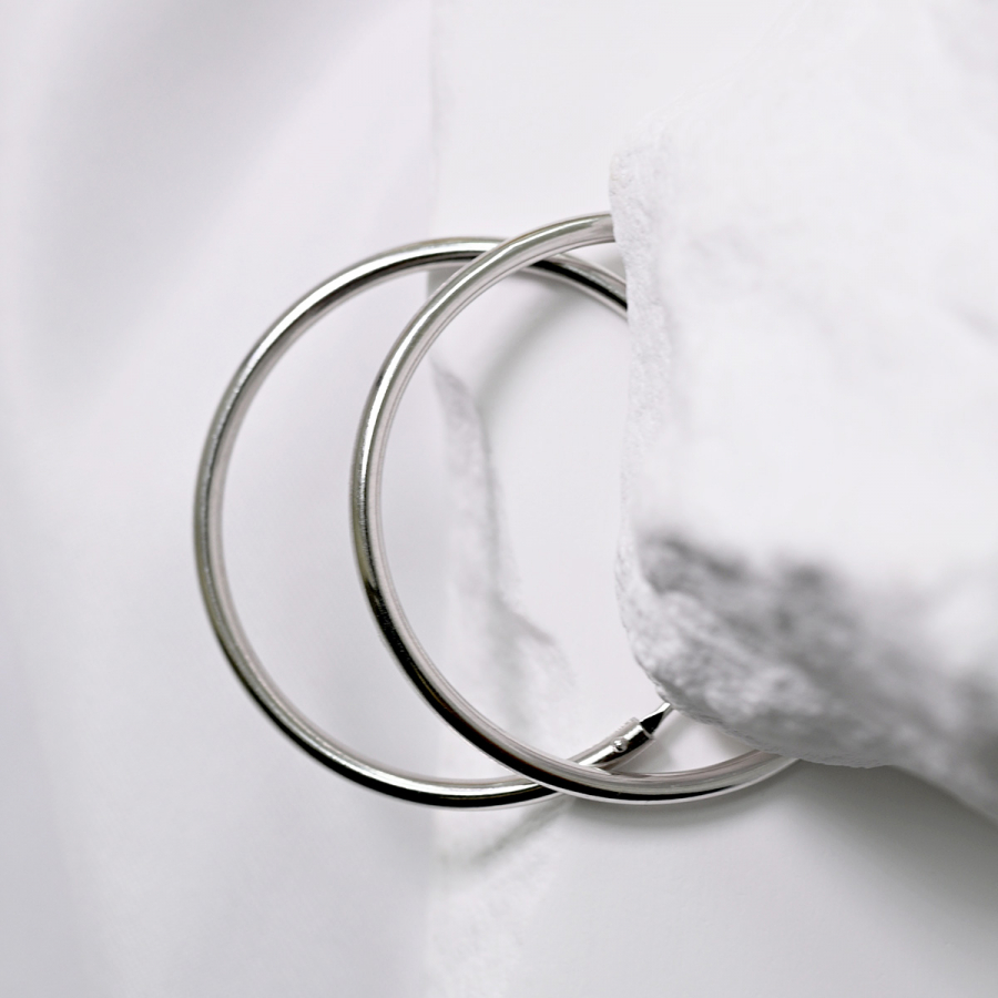 Strieborné náušnice typu kruhy 61005 sú vyrobené zo striebra rýdzosti 925/1000 , ktorého povrch je upravený ródiom. Rhodium šperk ochráni proti sčernaniu, zožltnutiu alebo poškriabaniu.