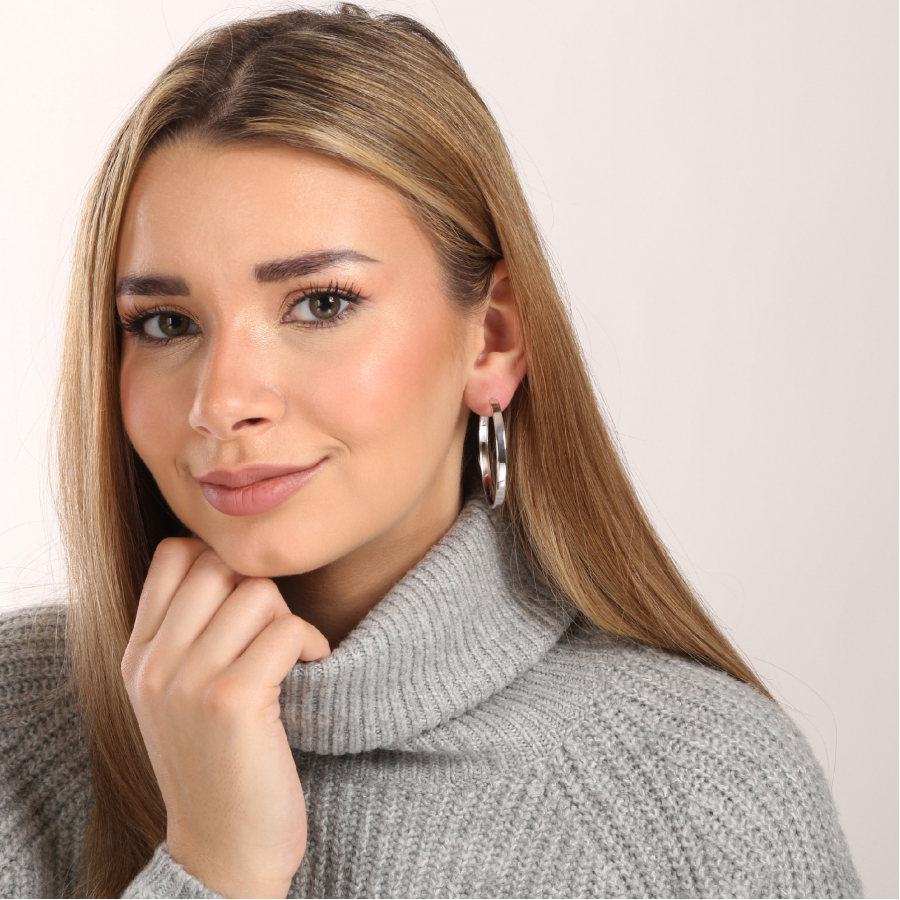 Klasika v odvážnom prevedení. Tieto výrazné strieborné kruhy s priemerom 43 mm sú stvorené pre ženy, ktoré chcú byť neprehliadnuteľné. Kvalitné striebro rýdzosti 925/1000 s ródiovou úpravou zaisťuje, že si náušnice zachovajú svoj dokonalý lesk a sú chránené proti sčernaniu či poškriabaniu. Bezpečné zapínanie na krúžok poskytuje pohodlné nosenie. Bez obsahu niklu sú ideálnou voľbou aj pre ženy s citlivou pokožkou. Či už ich skombinujete s elegantným kostýmom alebo casual outfitom, tieto nadčasové kruhy vždy pritiahnu pozornosť.