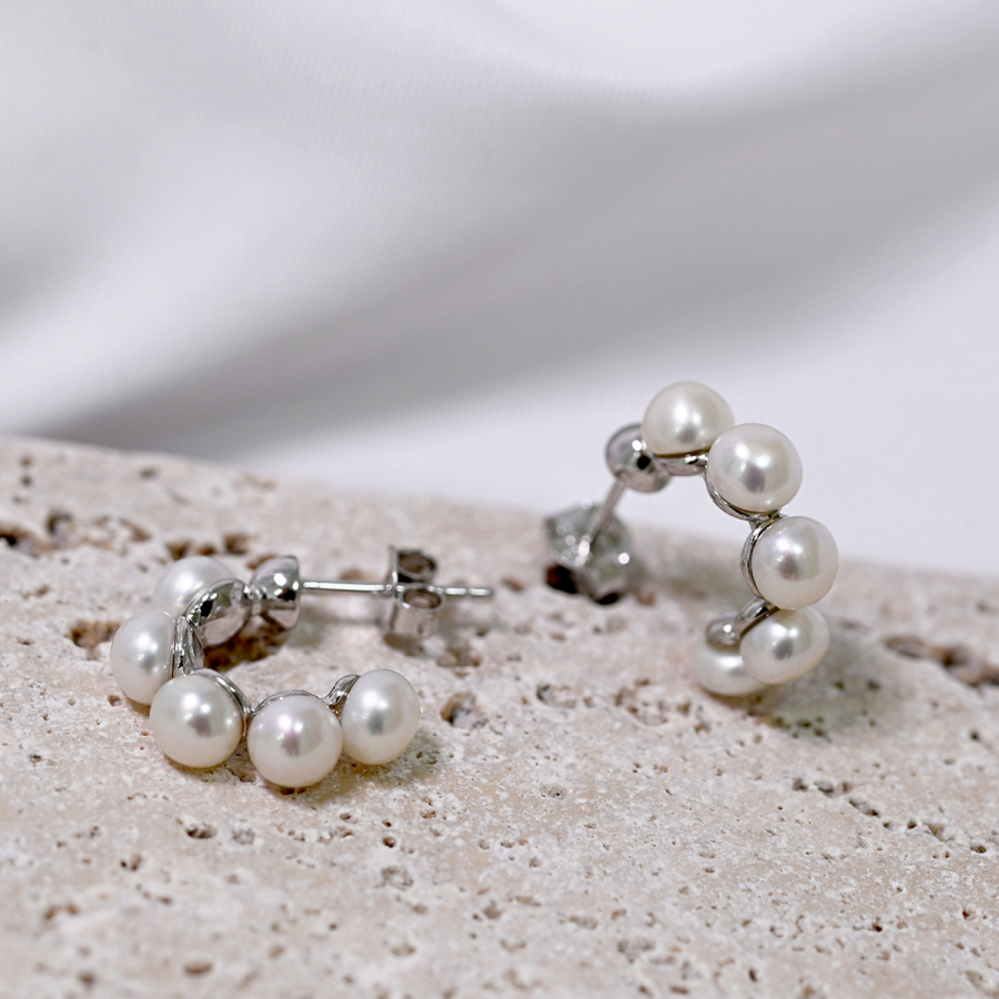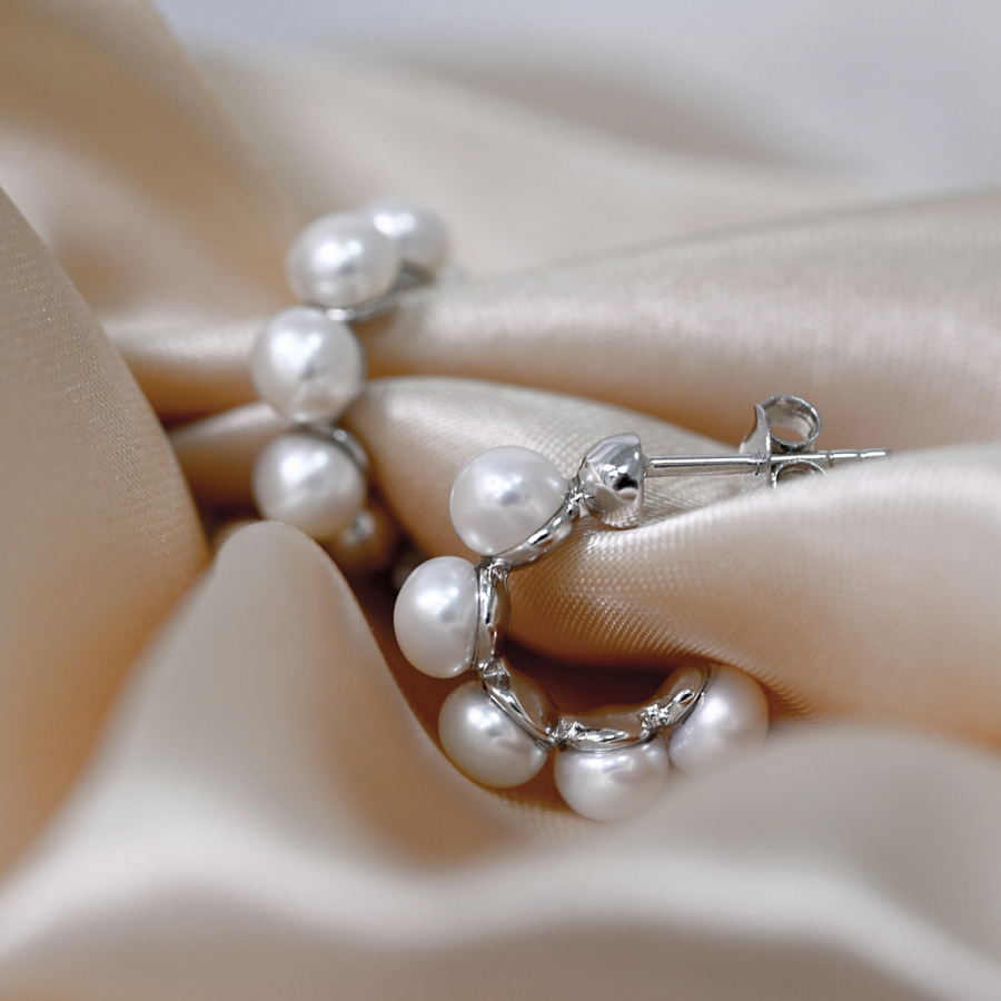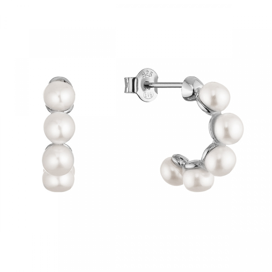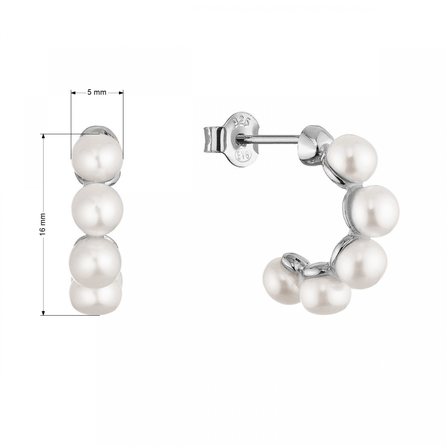 Strieborné náušnice kruhy s bielymi riečnymi perlami 21131.1