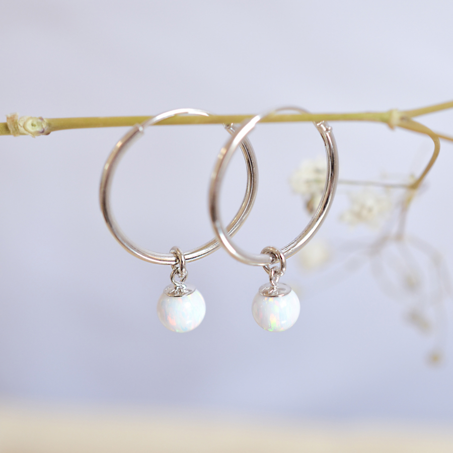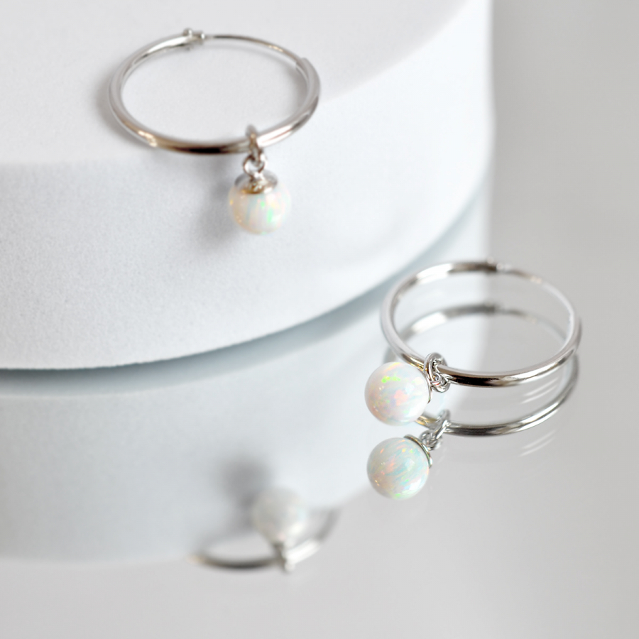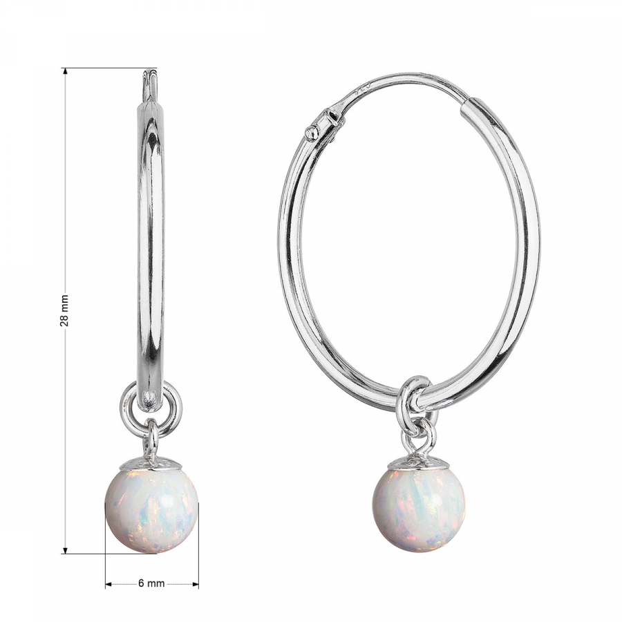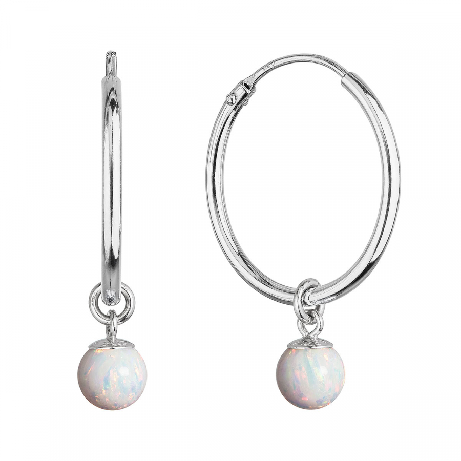 Strieborné náušnice kruhy s guličkou z bieleho syntetického opálu 11410.1 white