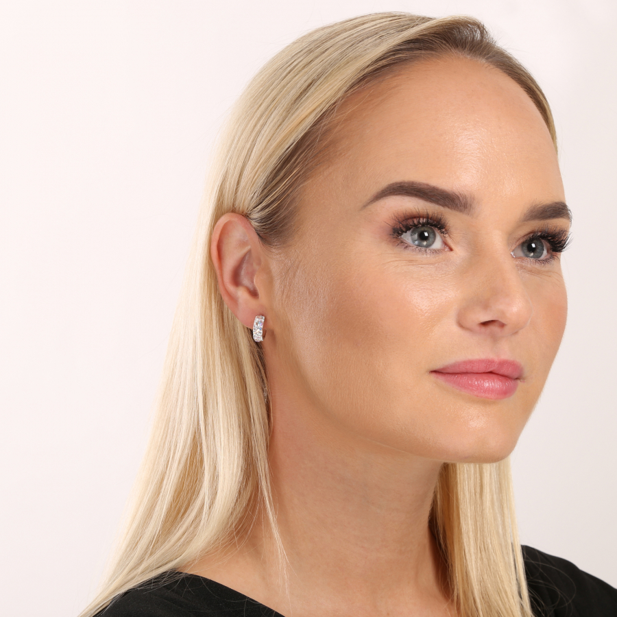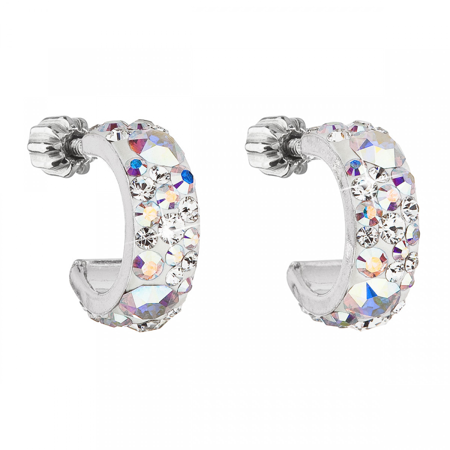 Strieborné náušnice kruhy s kryštálmi Swarovski ab efekt polkruh 31118.2