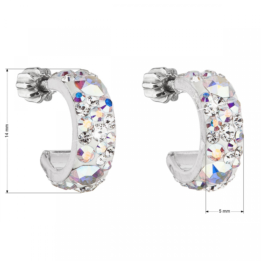 Parametre strieborných kruhových náušníc s kryštálmi Swarovski ab efekt polkruh 31118.2