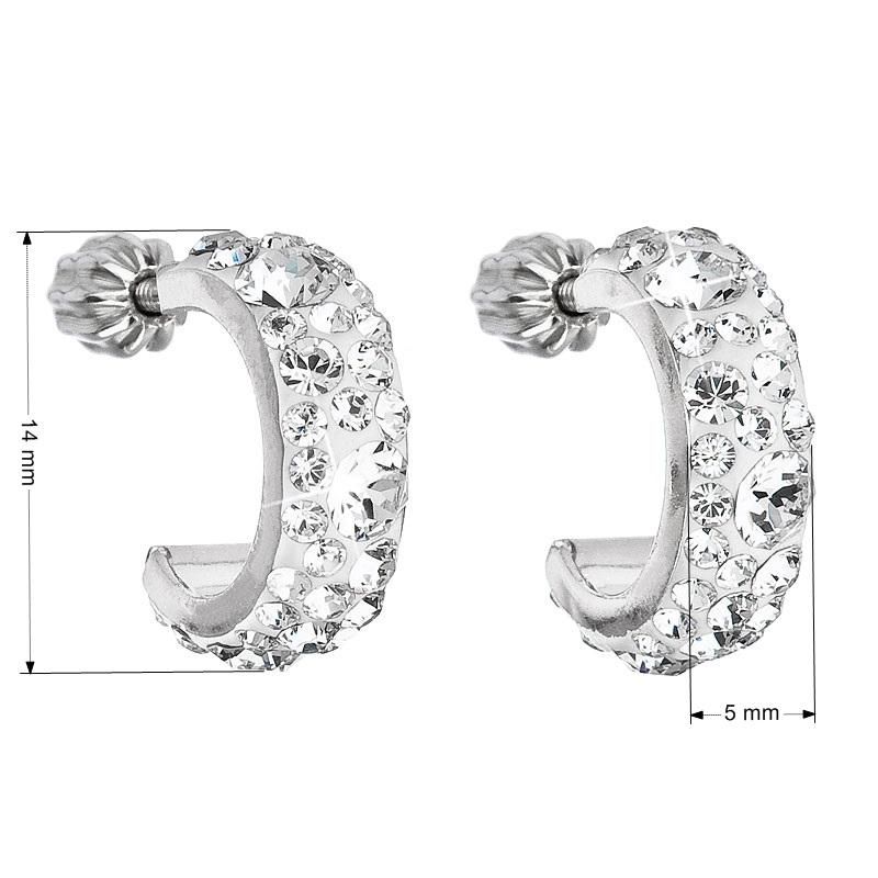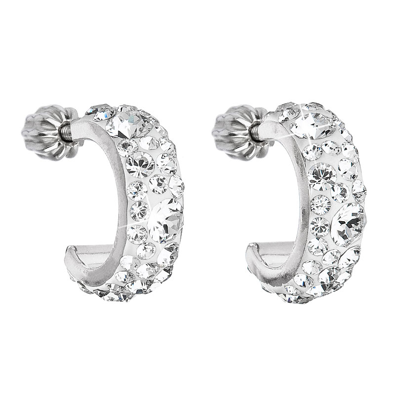 Náušnice 31118.1 v tvare polkruhu sú vyrobené zo striebra o rýdzosti 925/1000 s povrchovou úpravou ródiom a sú zdobené mnohými Swarovski kryštálmi v bielej farbe. Vďaka Swarovski kryštálom sa náušnice nádherne trblietajú. Náušnice zapnete na balónik , ktorý ich spoľahlivo ochráni proti nechcenej strate. Keďže do náušníc nie je pridaný nikel , môžu ich bez obáv nosiť aj alergici.