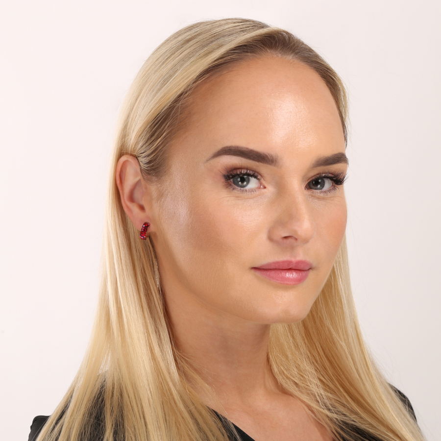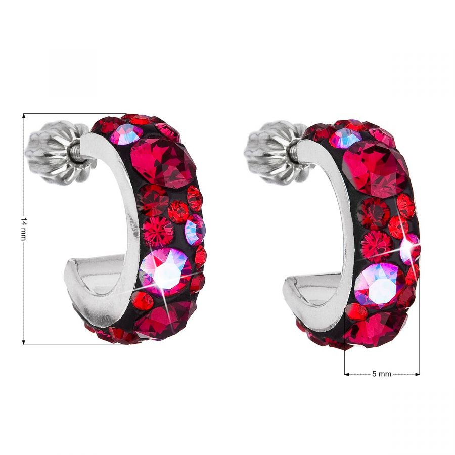 Parametre strieborných kruhových náušníc s kryštálmi Swarovski červený polkruh 31118.3 cherry