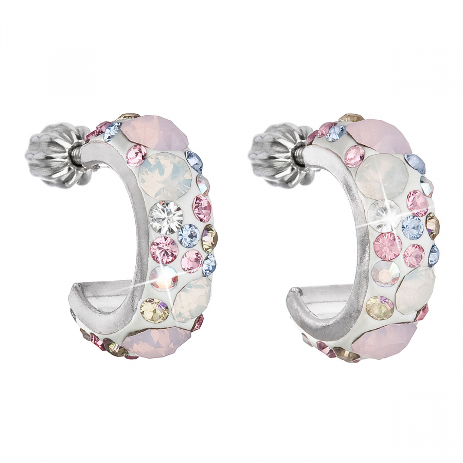 Strieborné náušnice kruhy s kryštálmi Swarovski ružové polkruh 31118.3 Magic rose