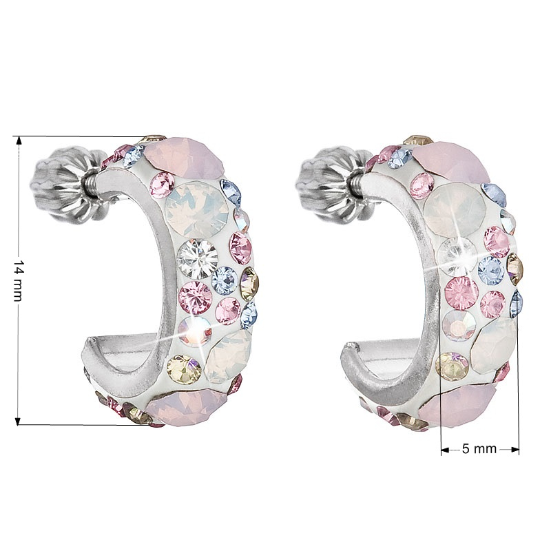Parametre strieborných kruhových náušníc s kryštálmi Swarovski ružové polkruh 31118.3 Magic rose