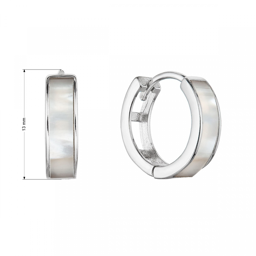 Strieborné kruhové náušnice 11428.1 o rýdzosti 925/1000 sú zdobené jemnou bielou perleťou. Striebro je chránené vrstvou ródia, a tak nečierna a nežltne. Keďže neobsahuje nikel, môžu ho bez obáv nosiť aj alergici. Náušnice sa zapínajú na krúžok.