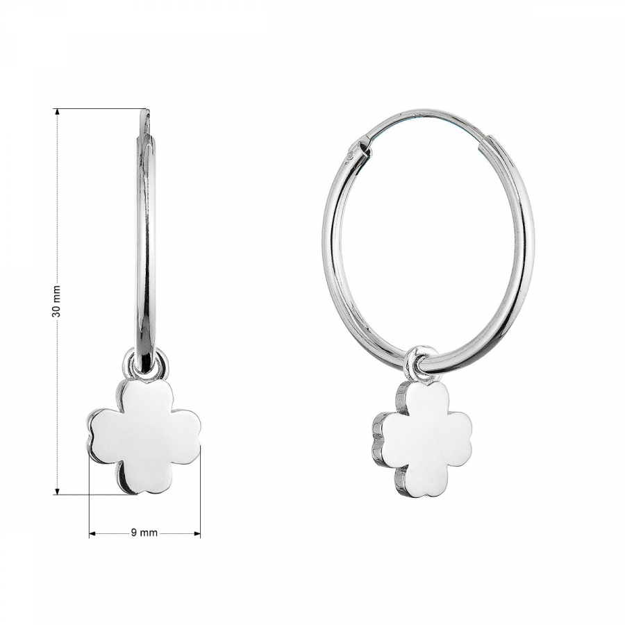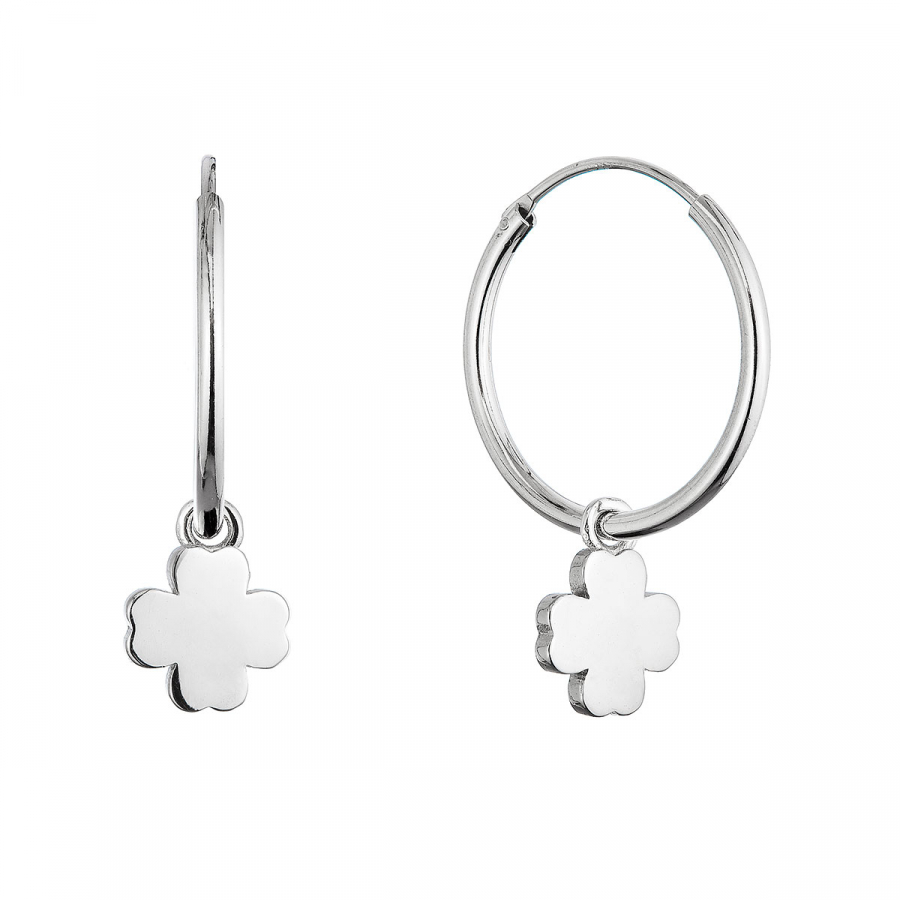Strieborné náušnice kruhy so štvorlístkami 61057
