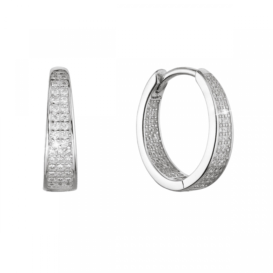 Strieborné náušnice kruhy so zirkónmi v bielej farbe 11444.1