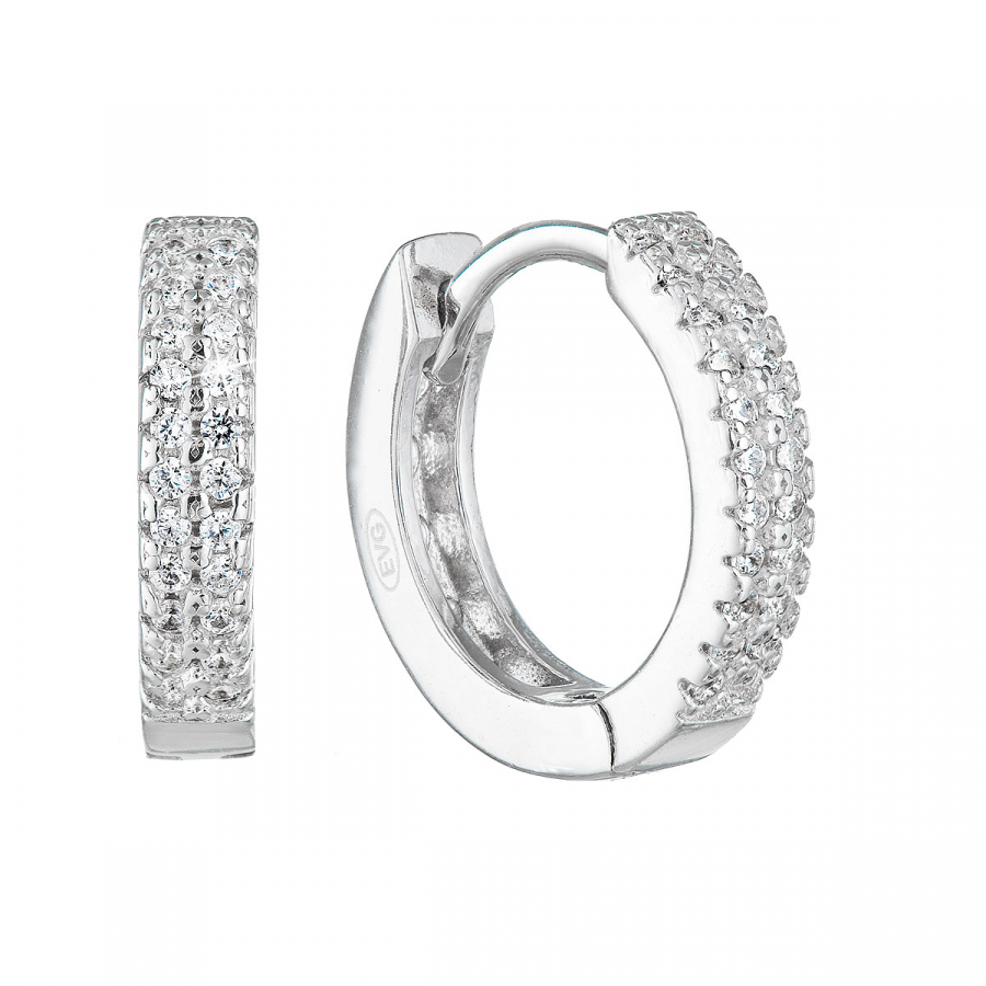 Strieborné náušnice kruhy so zirkónom v bielej farbe 11238.1