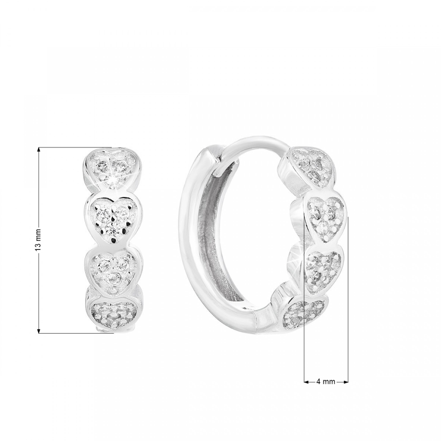 Ste zamilovaná až po uši? Urobte si radosť a kúpte si kruhové strieborné náušnice so 4 srdiečkami vysadené drobnými trblietavými zirkónmi.