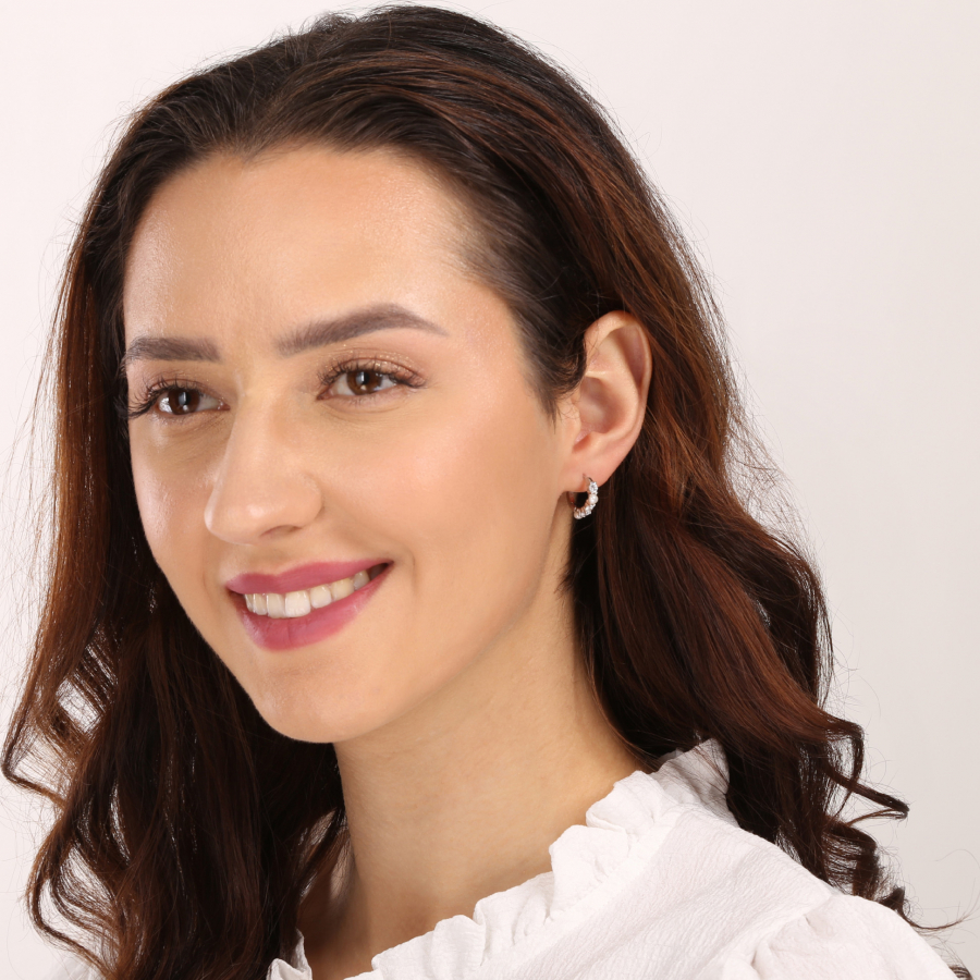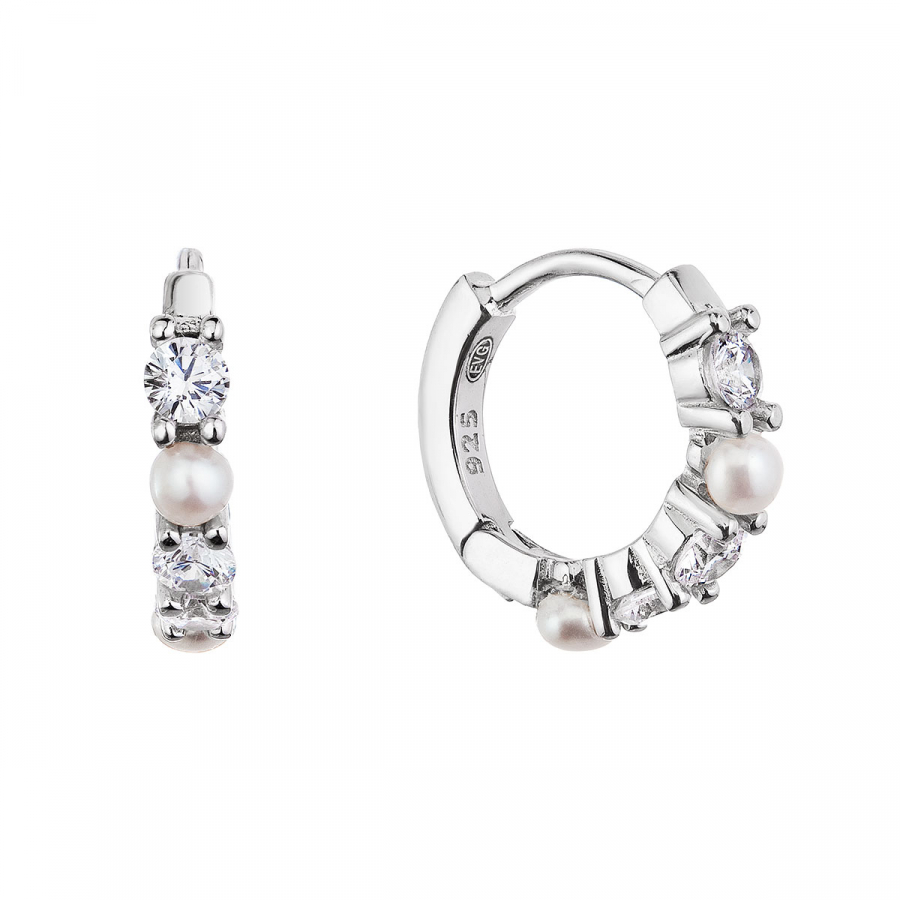 Strieborné náušnice krúžky s bielymi riečnymi perlami a zirkónmi 21077.1