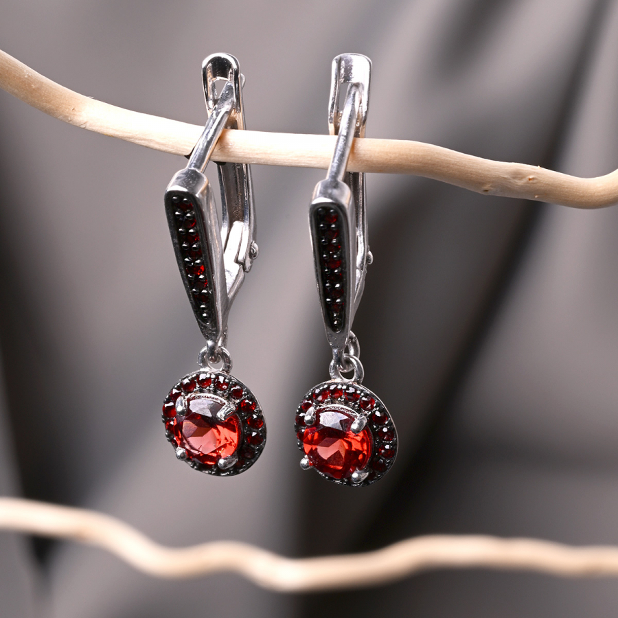 Luxusné bohato zdobené visiace náušnice s pravými granátmi vyzdvihnú Váš pôvab!