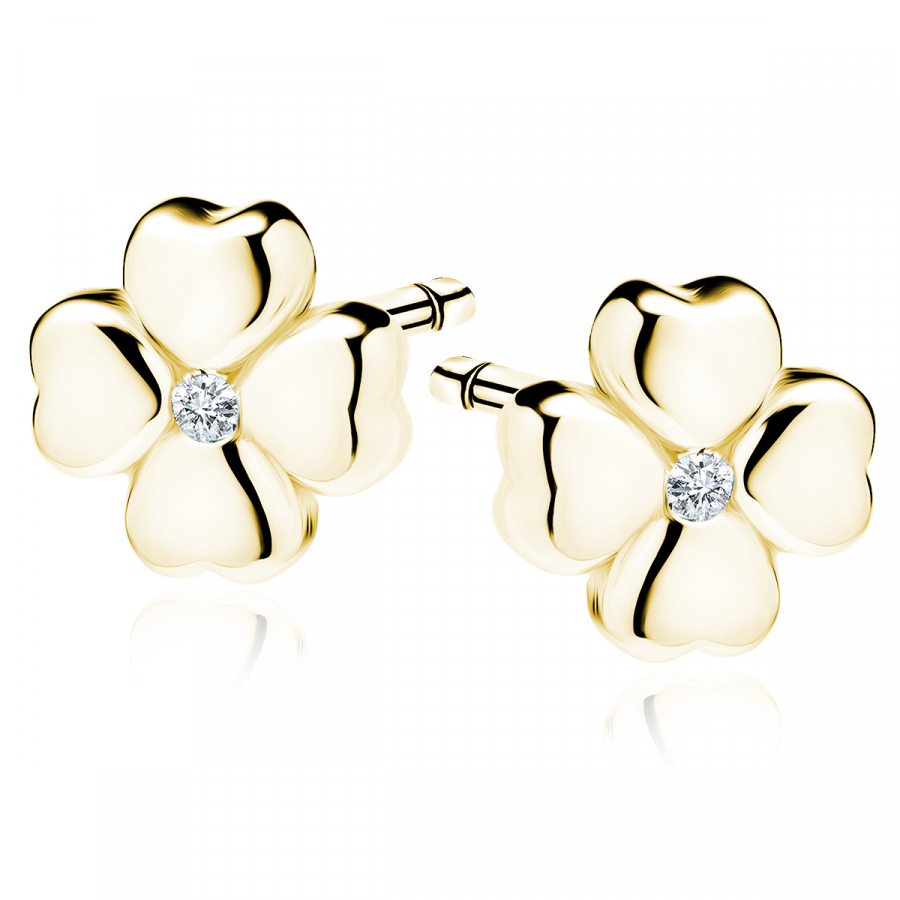 Strieborné náušnice napichovacie Štvorlístky pozlátené
