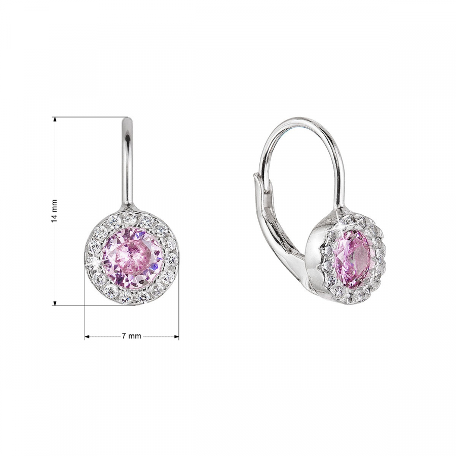 Visiace náušnice 11475.3 sú vyrobené zo striebra rýdzosti 925/1000 , ktorého povrch je upravený ródiom. Rhodium šperk ochráni proti sčernaniu, zožltnutiu alebo poškriabaniu. Náušnice majú na strede ružový zirkón, ktorý je bohato vysadený malými bielymi zirkónmi po jeho obvode. Náušnice majú zapínanie na klapku . Šperk neobsahuje nikel , a tak sa nemusíte obávať žiadne alergické reakcie. Priemer náušnice je 7 mm.