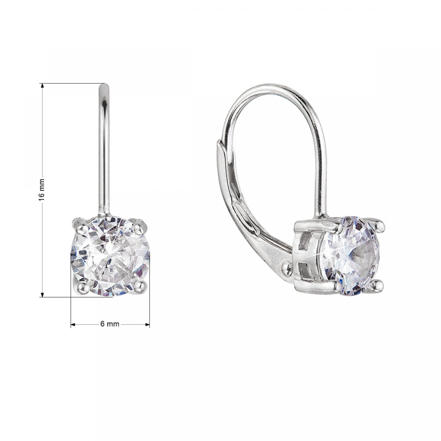 Visiace náušnice 11477.1 sú vyrobené zo striebra rýdzosti 925/1000 , ktorého povrch je upravený ródiom. Rhodium šperk ochráni proti sčernaniu, zožltnutiu alebo poškriabaniu. Náušnice tvoria len jeden biely okrúhly zirkón s priemerom 6 mm. Zapínanie je na klapku. Šperk neobsahuje nikel , a tak sa nemusíte obávať žiadne alergické reakcie.