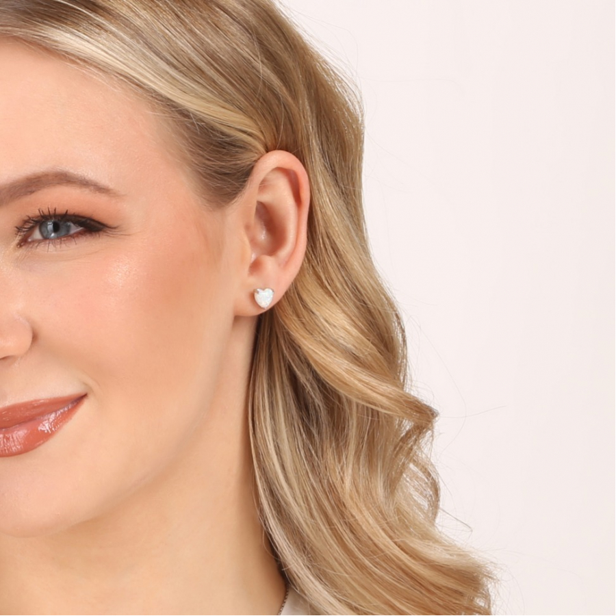 Strieborné náušnice opálové srdiečka 11691.1