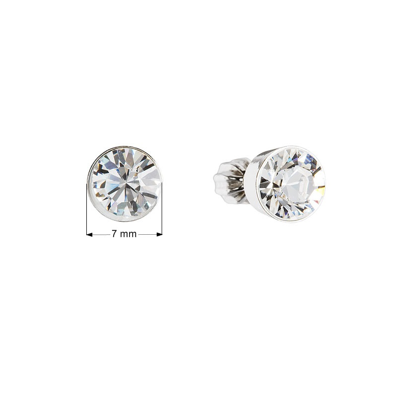 Parametre strieborných náušníc kôstok s kryštálmi Preciosa biele okrúhle 31113.1 crystal