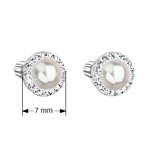 Parametre strieborných náušníc kôstok s kryštálmi Swarovski a bielou perlou okrúhle 31314.1