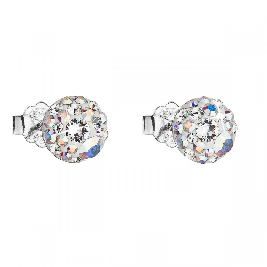 Strieborné náušnice pecka s kryštálmi Swarovski ab efekt okrúhle 31136.2
