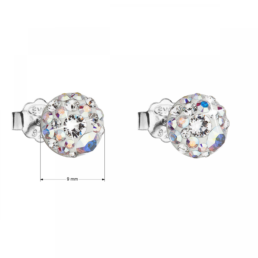 Parametre strieborných náušníc kôstok s kryštálmi Swarovski ab efekt okrúhle 31136.2