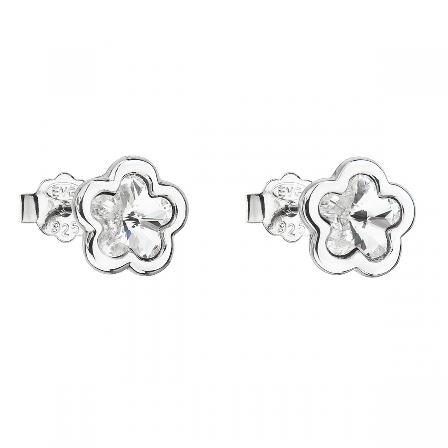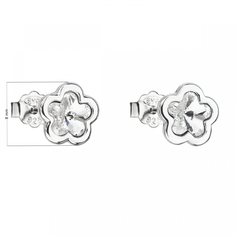 Strieborné náušnice pecka s kryštálmi Swarovski biela kvietka 31255.1