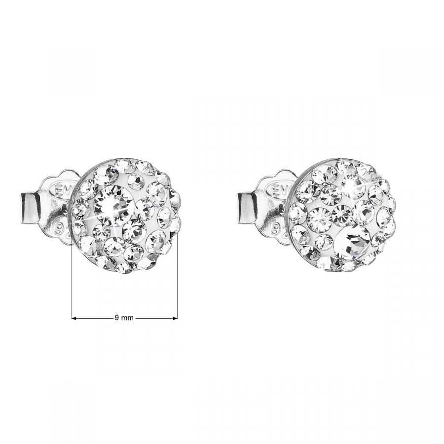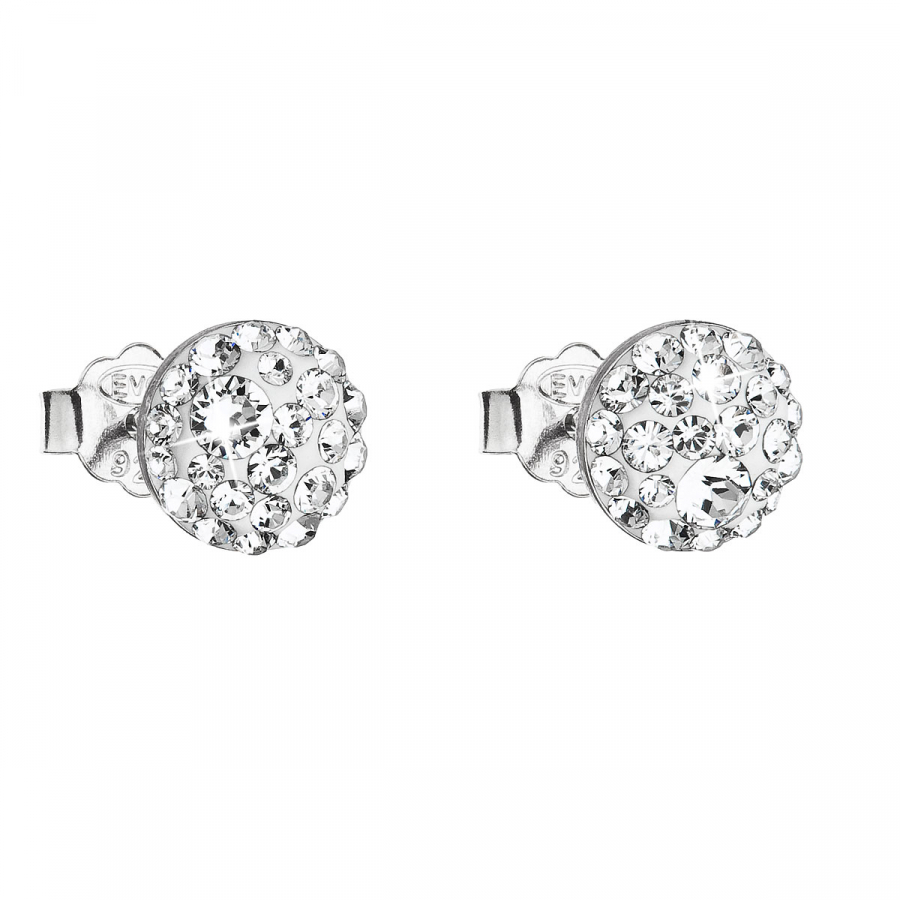 Strieborné náušnice pecka s kryštálmi Swarovski biele okrúhle 31136.1