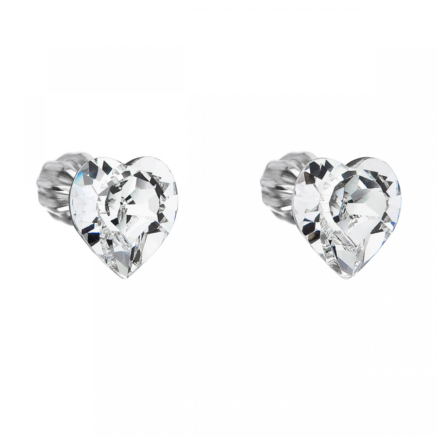 Strieborné náušnice pecka s kryštálmi Swarovski biele srdce 31139.1