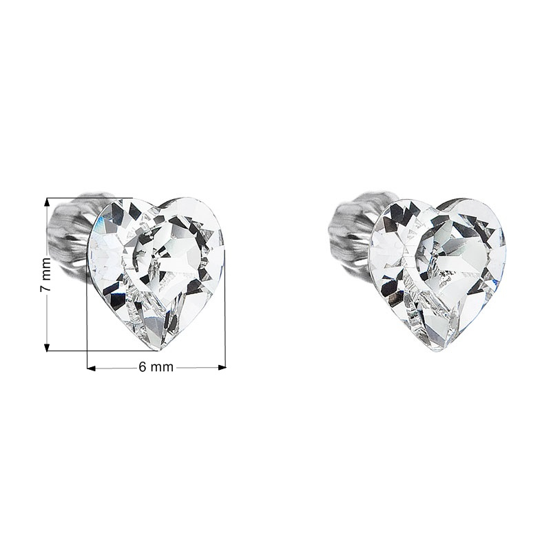Parametre strieborných náušníc kôstok s kryštálmi Swarovski biele srdce 31139.1