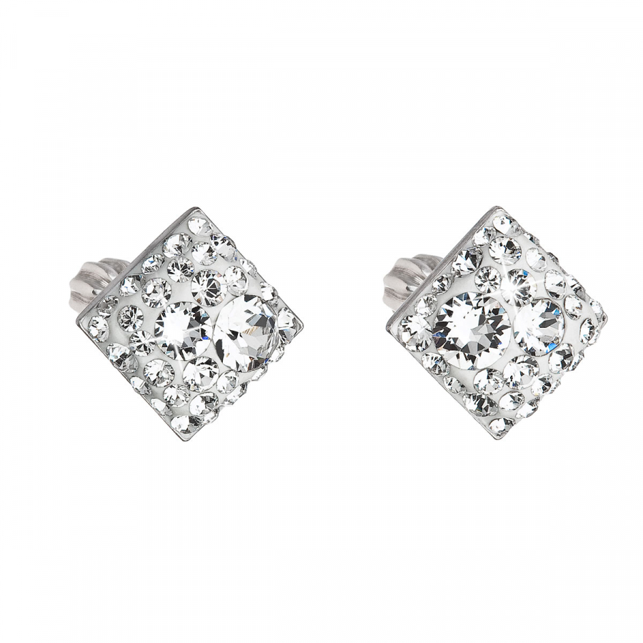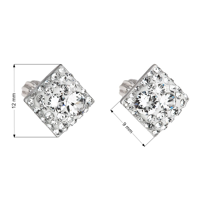 Strieborné náušnice pecka s kryštálmi Swarovski biely kosoštvorec 31169.1