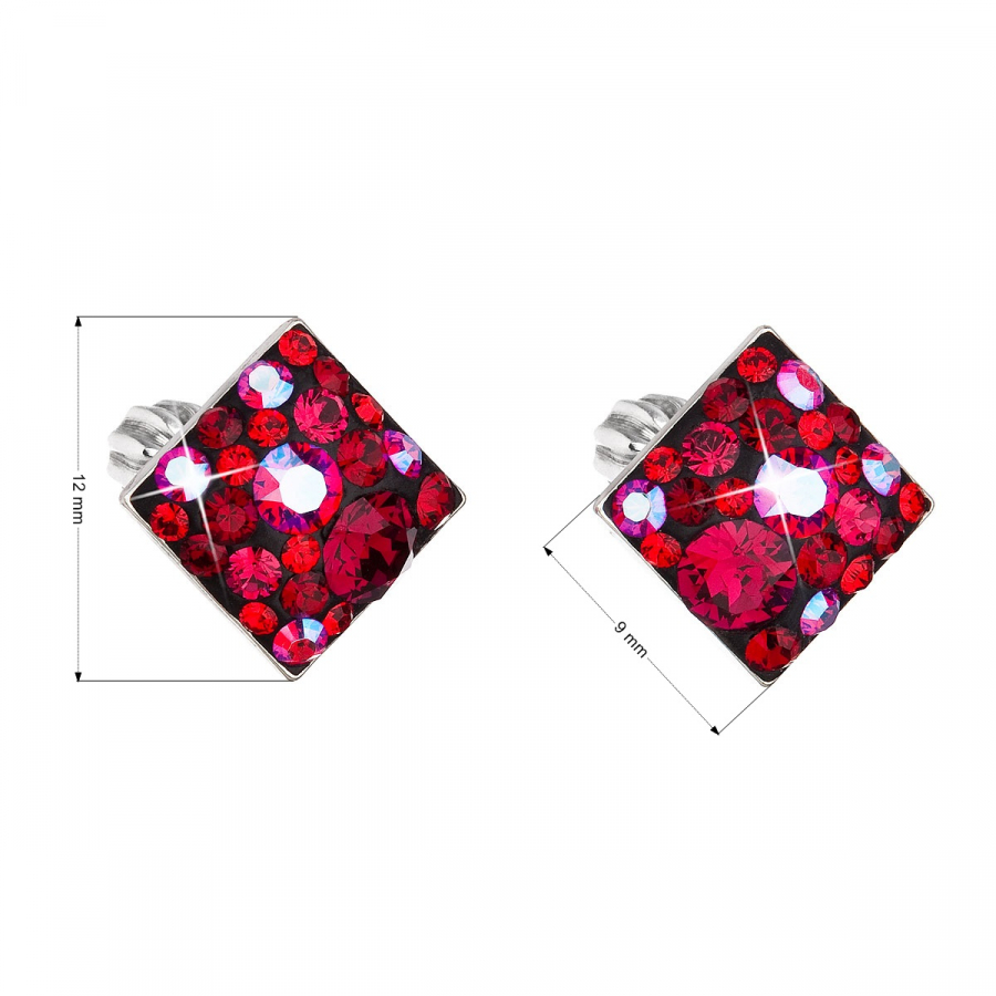 Parametre strieborných náušníc kôstok s kryštálmi Swarovski červený kosoštvorec 31169.3 cherry