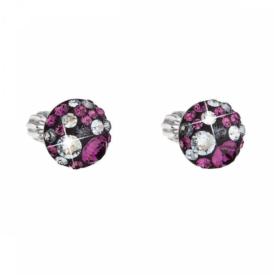 Strieborné náušnice pecka s kryštálmi Swarovski fialové okrúhle 31336.3 dark amethyst