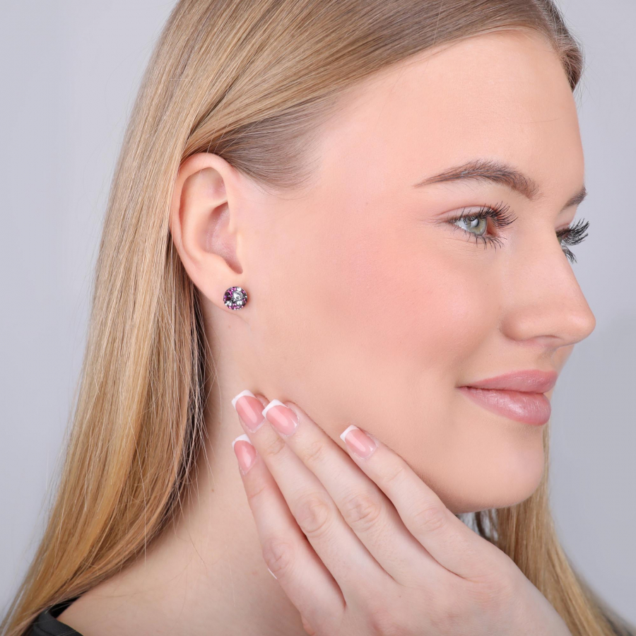 Parametre strieborných náušníc pecka s kryštálmi Swarovski fialové okrúhle 31336.3 dark amethyst