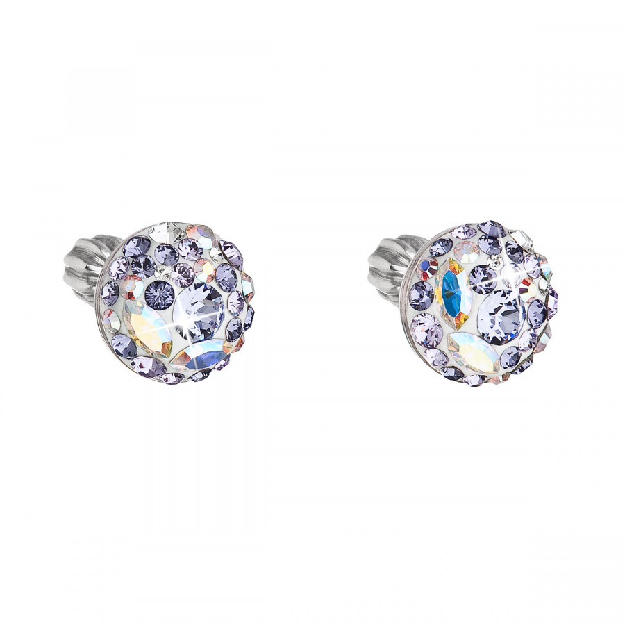Strieborné náušnice pecka s kryštálmi Swarovski fialové okrúhle 31336.3 violet