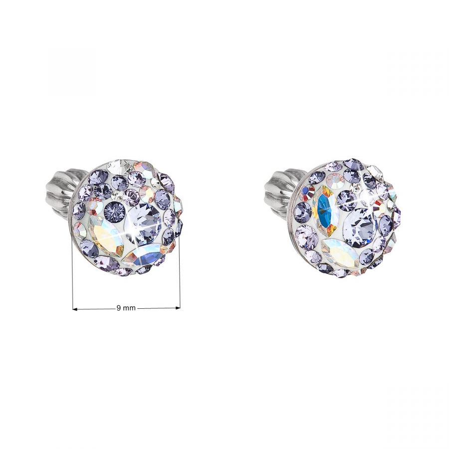 Parametre strieborných náušníc pecka s kryštálmi Swarovski fialové okrúhle 31336.3 violet