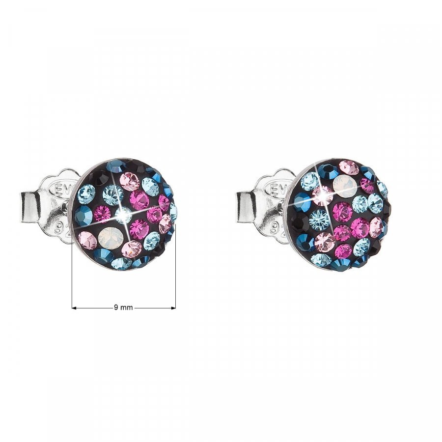 Strieborné náušnice pecka s kryštálmi Swarovski mix farieb okrúhle 31136.4 galaxy