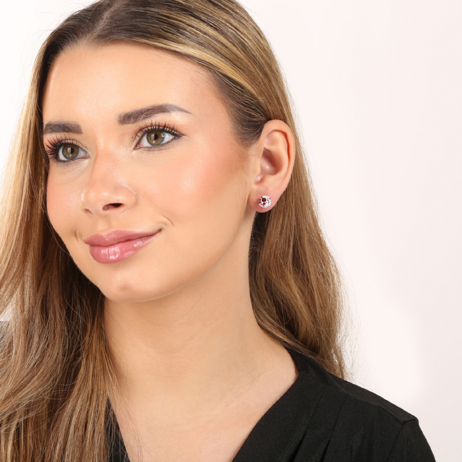 Strieborné okrúhle kôstky náušnice 31336.3 sweet love september mnohých kryštály Swarovski. Červenoružová farba kryštálov korešponduje s rhodiovaným striebrom 925/1000, z ktorého sú náušnice vytvorené. Rhodium udrží šperk v skvelej forme - bez zažltnutia aj sčernania. Zároveň chráni náušnice proti poškriabaniu. Šperk neobsahuje nikel, je teda vhodným darčekom aj pre alergikov.