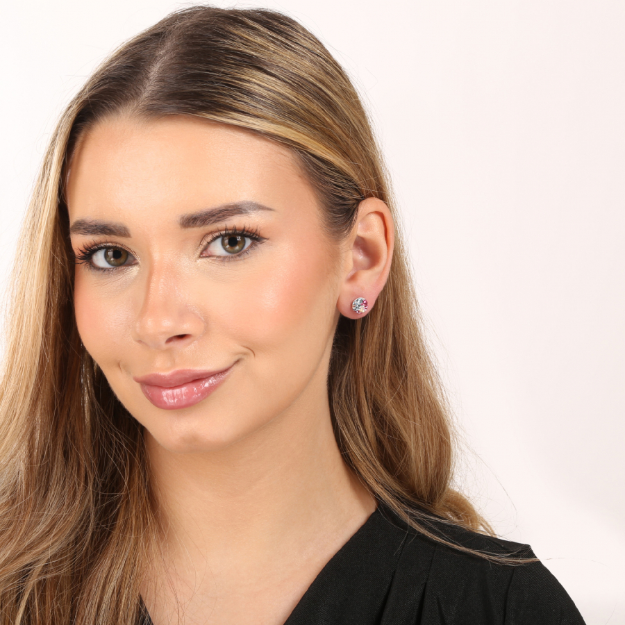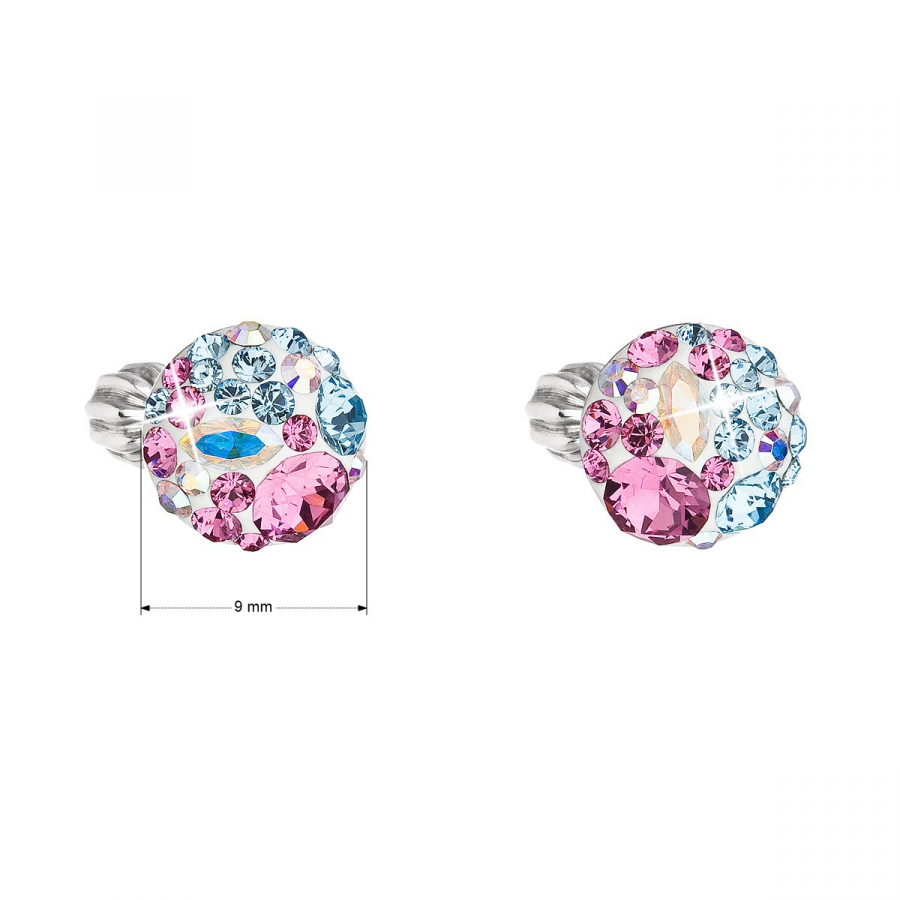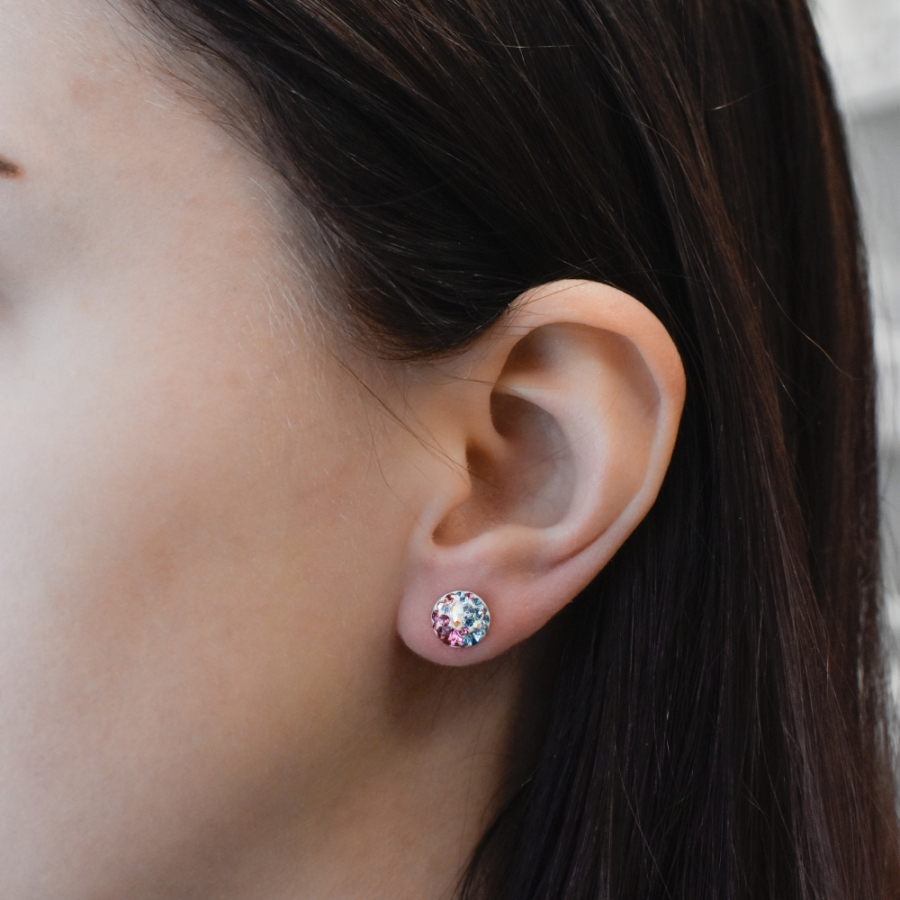 Strieborné náušnice pecka s kryštálmi Swarovski mix farieb okrúhle 31336.3 water lilly